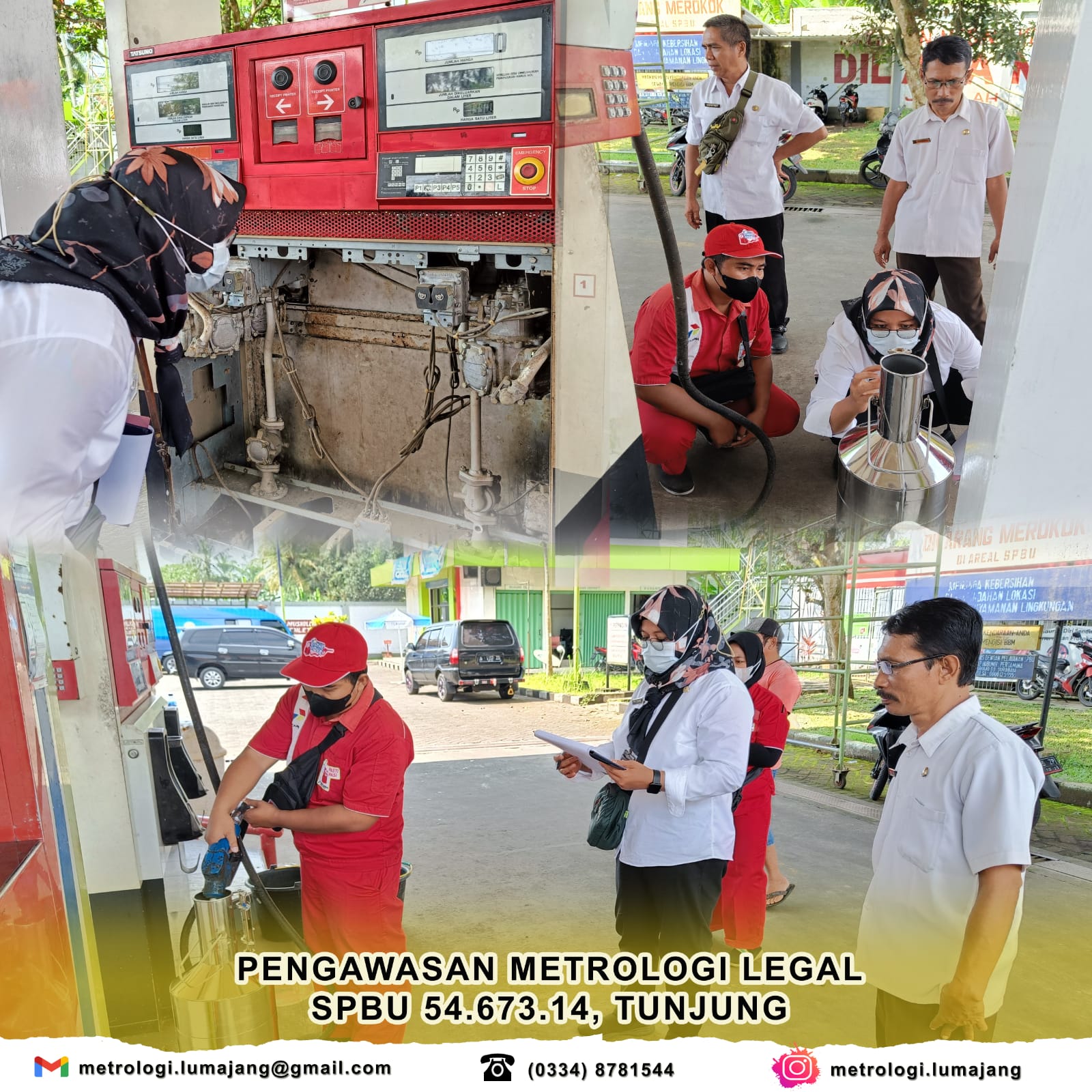 Dalam rangka memberikan kepastian hukum hasil pengukuran Alat Ukur, Takar, Timbang dan Perlengkapannya (UTTP) menjelang Hari Raya Natal 2022 dan Tahun Baru 2023, pada tanggal 13-14 Desember 2022 tim pengawas kemetrologian Unit Metrologi Legal Dinas Koperasi, UKM, Perindustrian dan Perdagangan Kabupaten Lumajang melakukan kegiatan Pengawasan Metrologi Legal di SPBU 54.673.08 Banyuputih Lor dan di SPBU 54.673.14 Tunjung